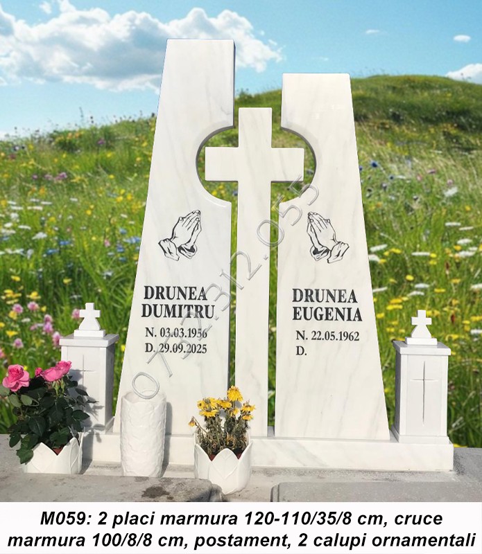 • Cruci marmura sau cruci granit sunt compuse din placa/placi marmura sau granit, postament si doua vaze ornamentale.
